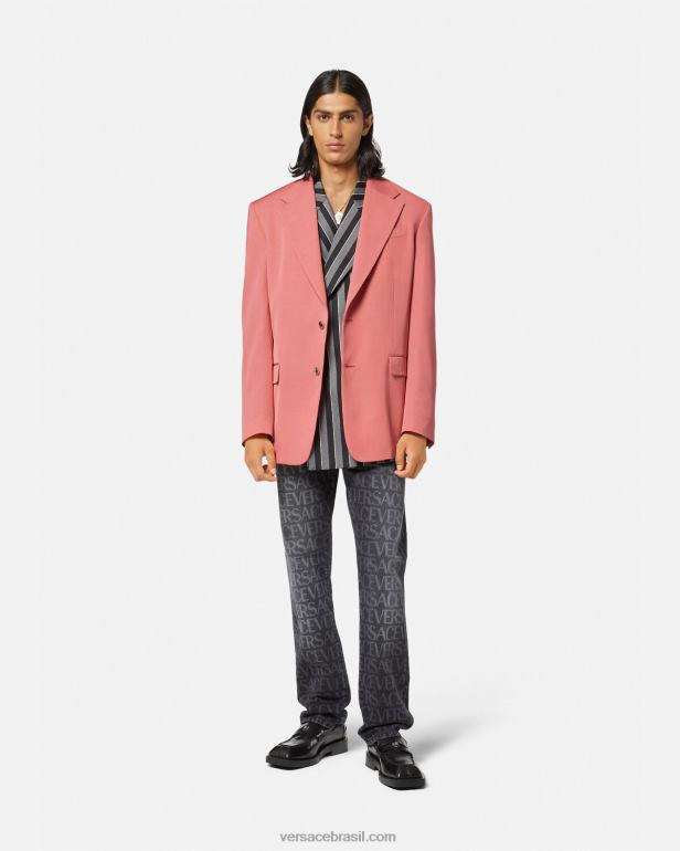 confeccionado em mistura de sarja de algodão, este blazer trespassado é totalmente forrado, com lapela entalhada e bolsos frontais com aba.