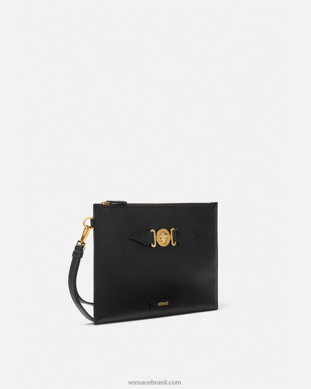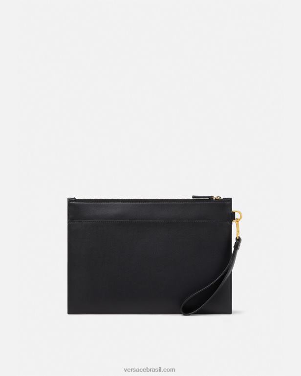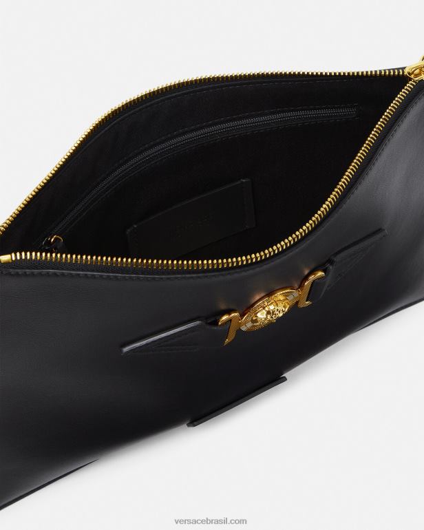 confeccionada na Itália em couro liso, esta bolsa é adornada com ferragens medusa biggie e detalhes em forma de V. o design com zíper apresenta um bolso adicional para fácil acesso na parte traseira. o estilo pode ser carregado usando a pulseira removível.