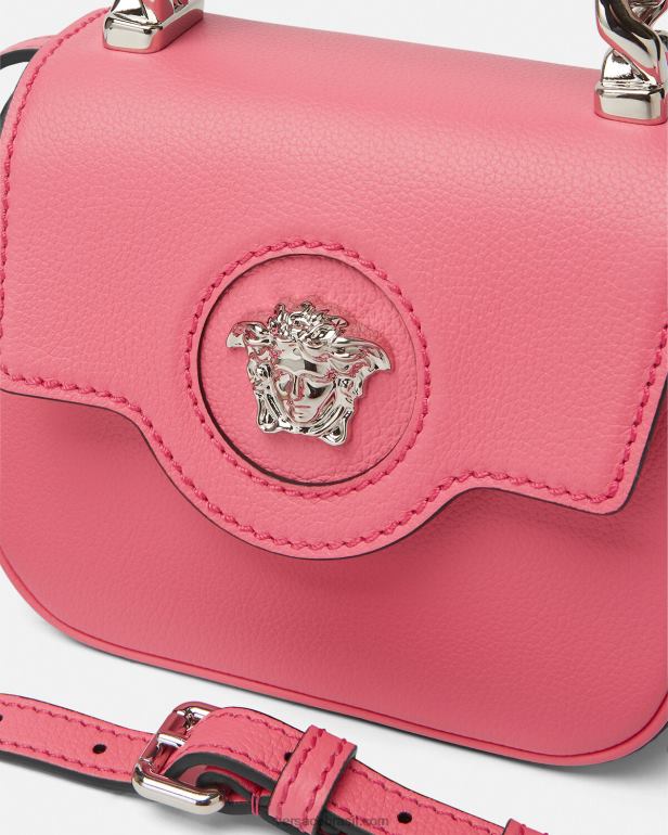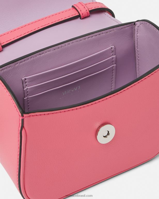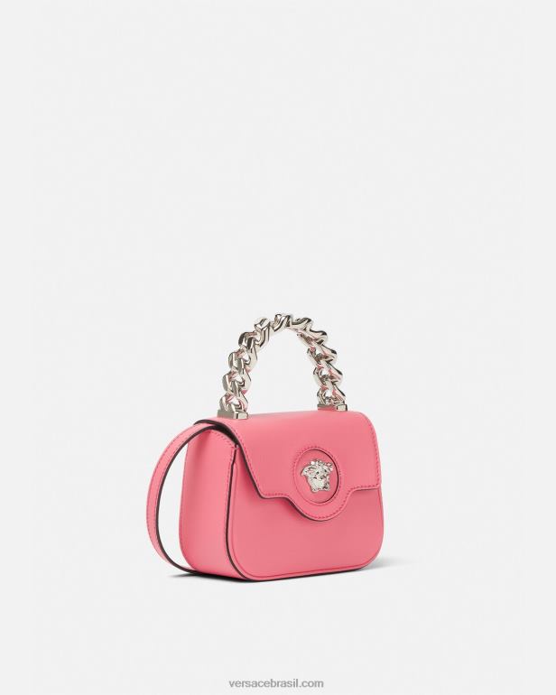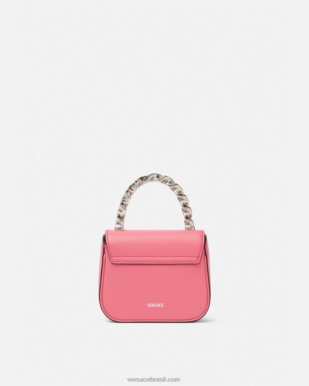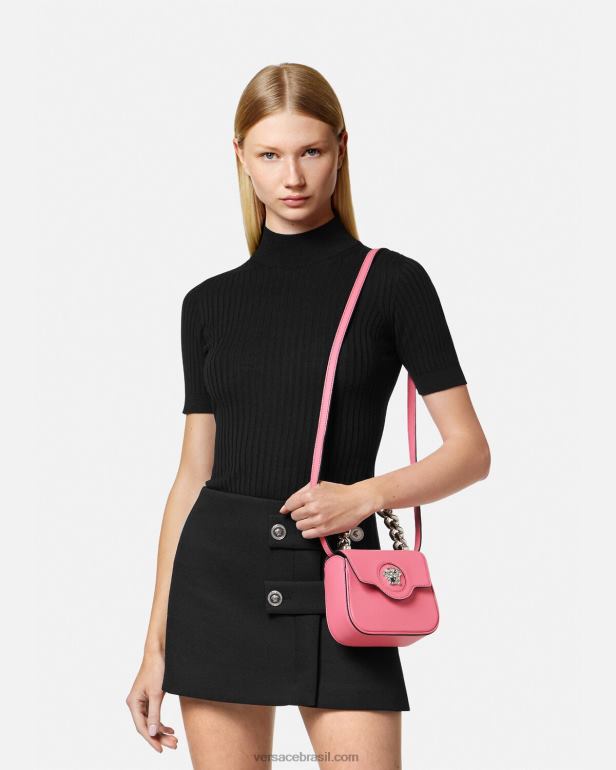 a mini bolsa la medusa foi confeccionada na Itália em couro granulado. a medusa central é instantaneamente reconhecível e a alça superior de corrente fixa adiciona uma opção de transporte alternativa junto com a alça de ombro removível e ajustável.