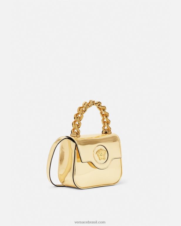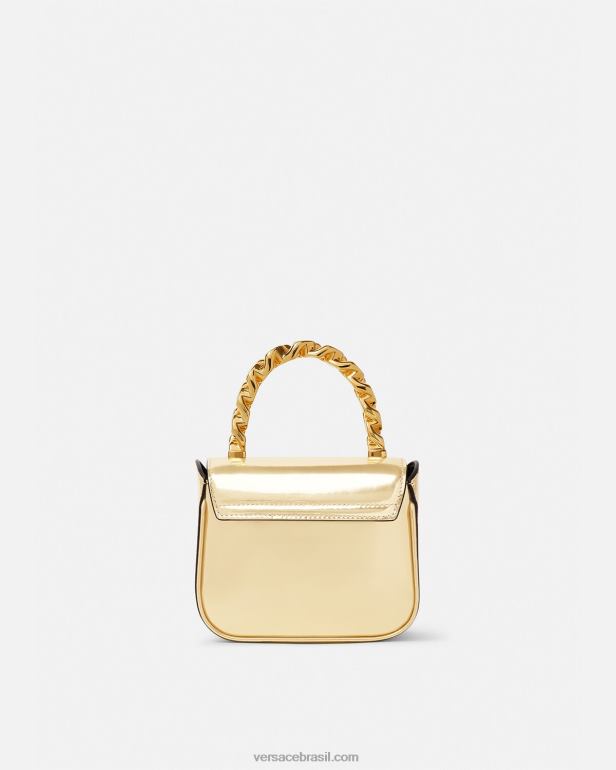 feito na Itália em couro brilhante, este design apresenta uma alça superior de corrente rígida. é adornado com uma medusa central em tom dourado e possui uma alça ajustável.