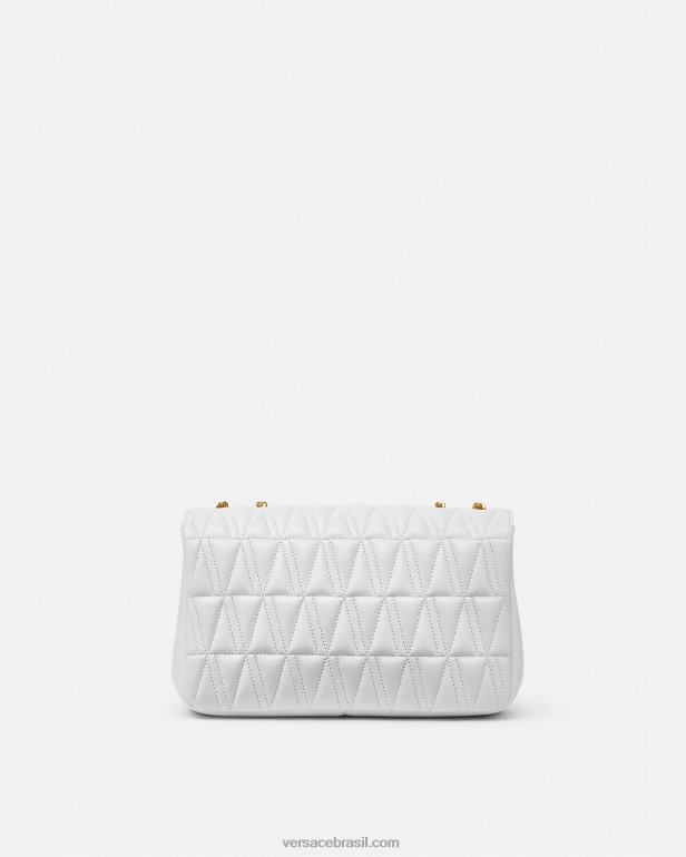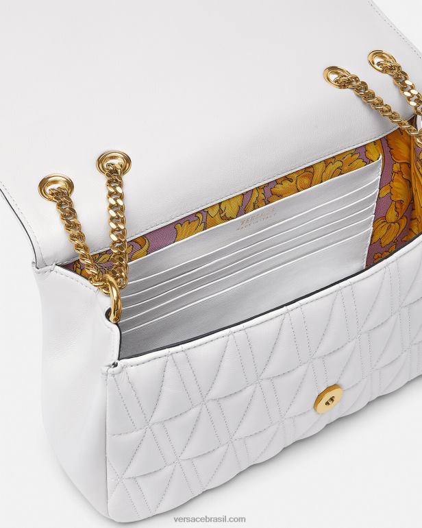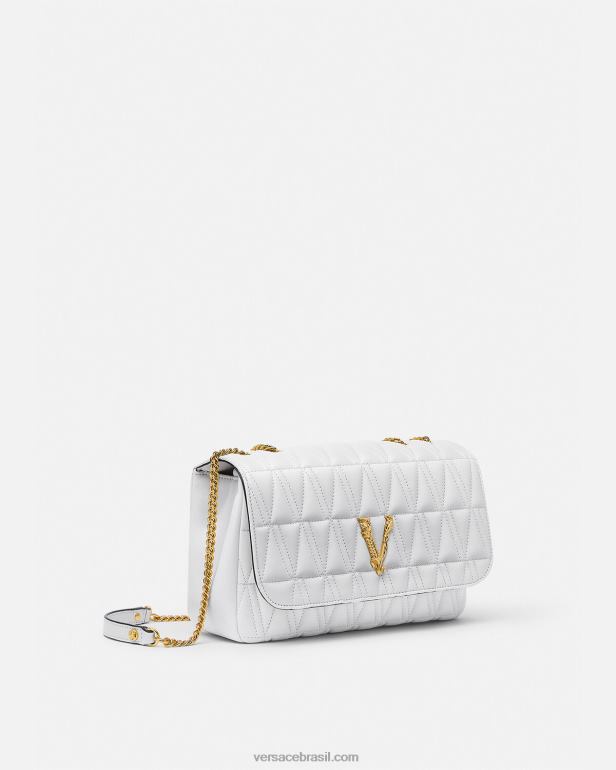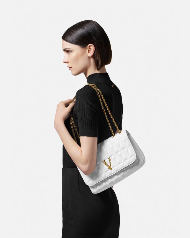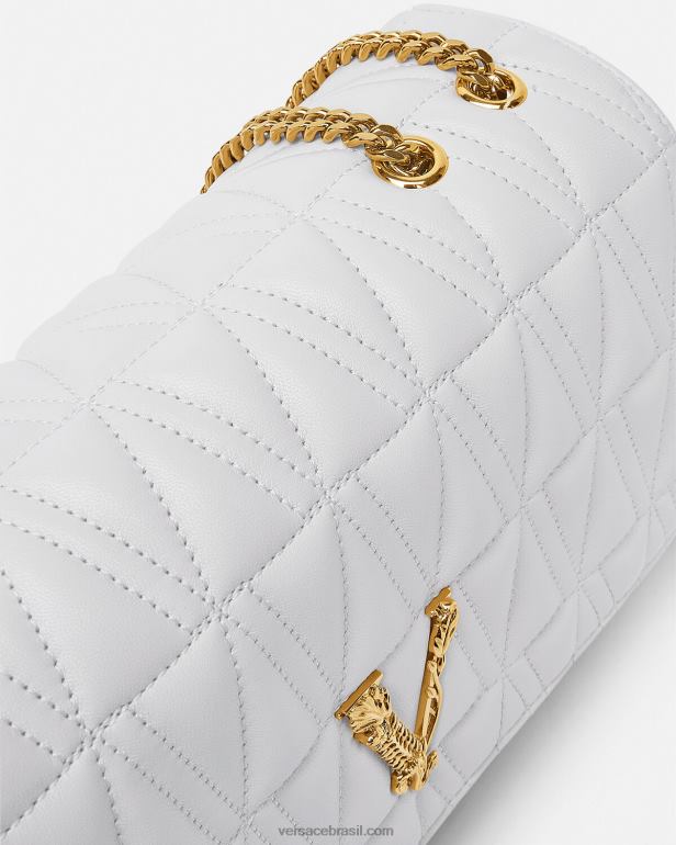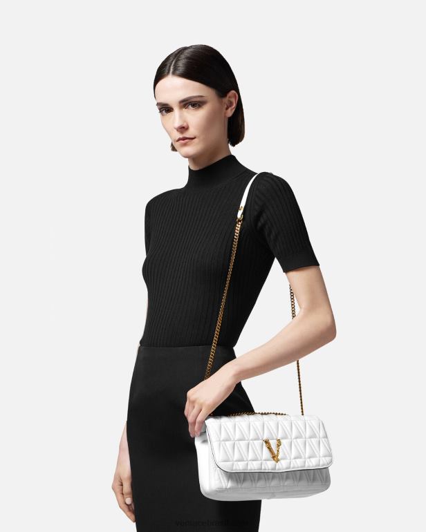 Levando o nome da divindade romana da virtude e do valor, a bolsa de ombro virtus é embelezada com emblemáticas ferragens barroco v. confeccionado em couro de pele de cordeiro acolchoado em forma de V, o estilo elegante apresenta forro com estampa barroca.