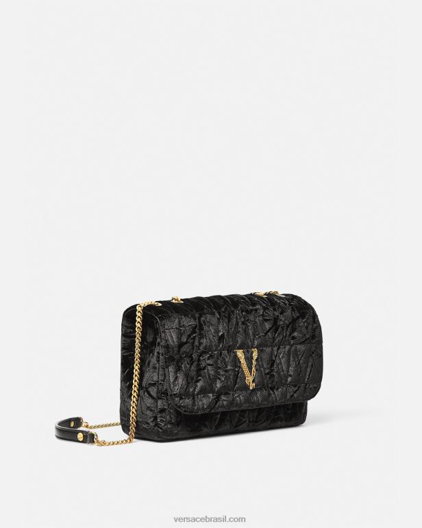 Levando o nome da divindade romana da virtude e do valor, a bolsa de ombro virtus é embelezada com emblemáticas ferragens barroco v. feito de veludo acolchoado de textura macia, o estilo elegante é totalmente forrado com couro e possui vários slots para cartões e compartimentos internos deslizantes.
