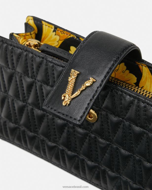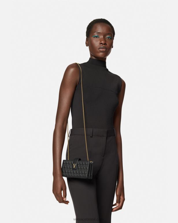 um estilo elegante para a noite, esta bolsa é confeccionada em couro flexível acolchoado em padrão V. o estilo é embelezado com brilhantes ferragens barocco v, um emblema da linha virtus e com forro com estampa barroco.