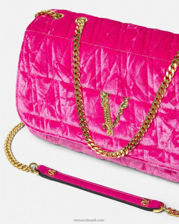 Levando o nome da divindade romana da virtude e do valor, a bolsa de ombro virtus é embelezada com emblemáticas ferragens barroco v. feito de veludo acolchoado de textura macia, o estilo elegante é totalmente forrado com couro e possui vários slots para cartões e compartimentos internos deslizantes.