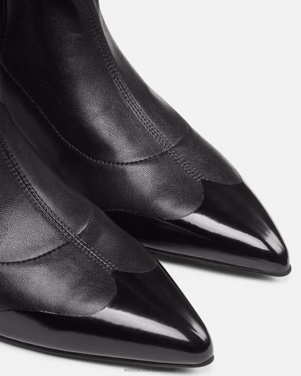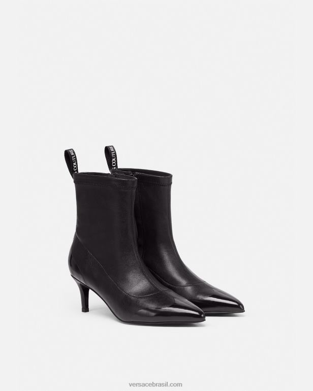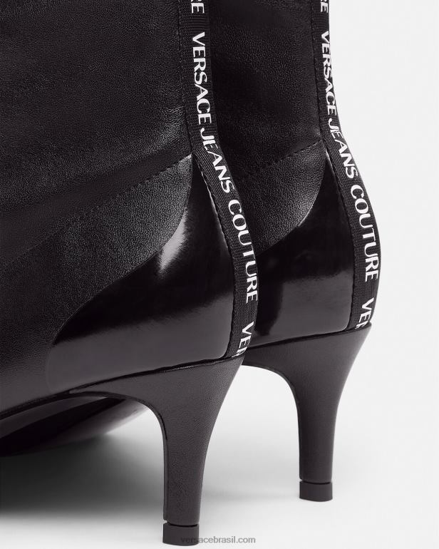 estes botins de salto médio apresentam um exterior macio com formato de bico pontudo e uma tira elástica com logotipo.