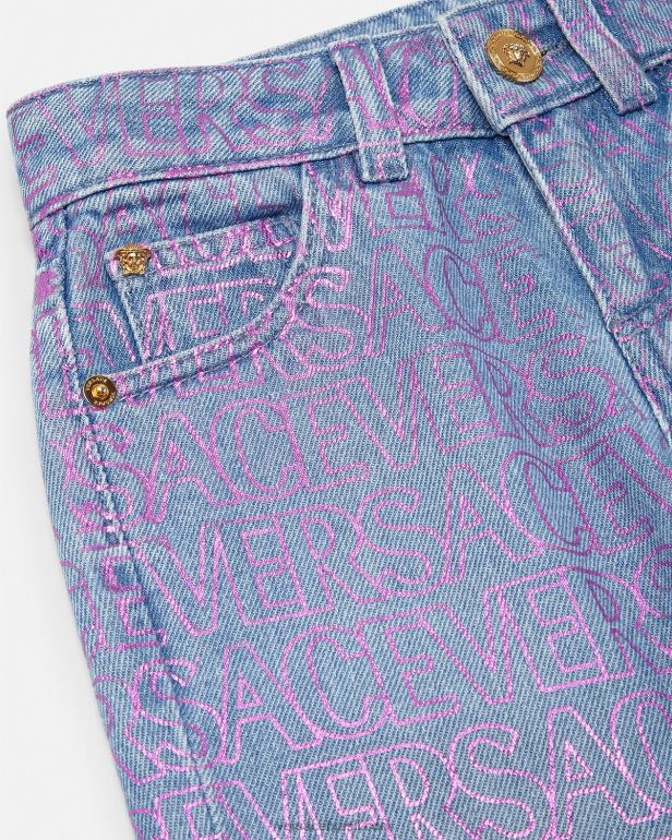 esses jeans largos são feitos de jeans de algodão com um motivo versátil Versace contrastante em fios metálicos com ferragens medusa.
