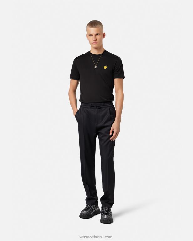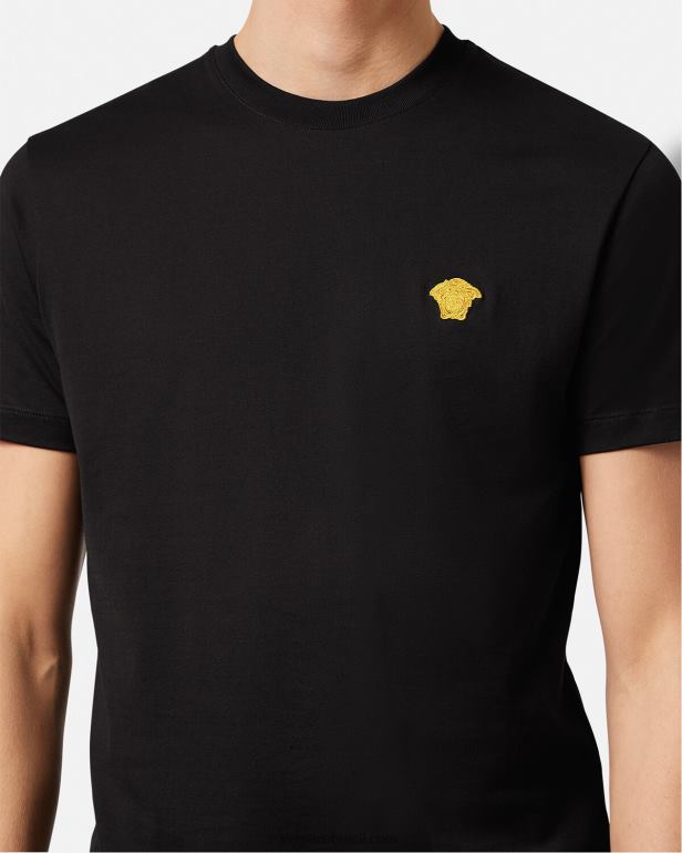 em corte justo, esta camiseta de manga curta é confeccionada em algodão e traz uma medusa bordada no peito.