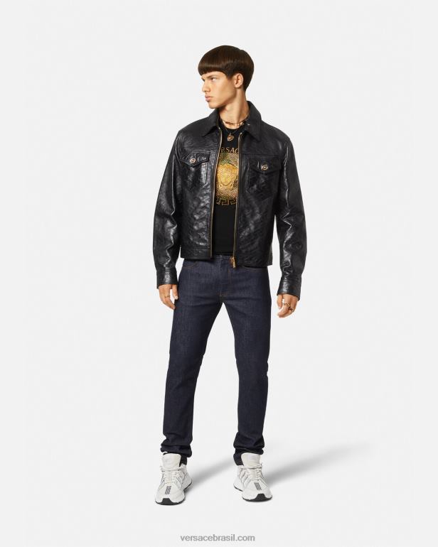 esta camiseta de algodão é decorada com cristais na frente com o motivo da medusa. tem gola redonda e mangas curtas.