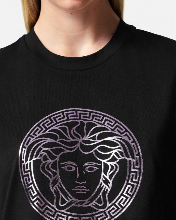 esta camiseta de manga curta em jersey de algodão tem um corte descontraído e apresenta um motivo de medusa com acabamento metálico na frente.