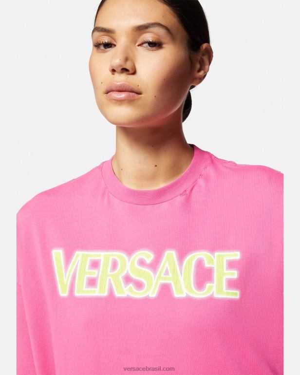 roupas P2TX152 Versace camiseta com logo desgastado rosa mulheres