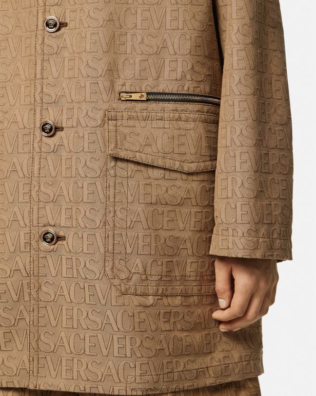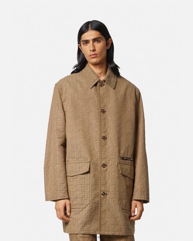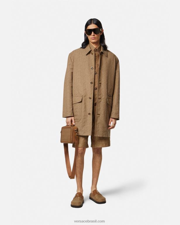 este casaco de lona técnica apresenta um padrão de logotipo jacquard versace, acentuado por ferragens de medusa esmaltadas e um forro parcial de barroco.