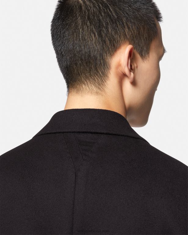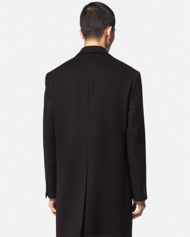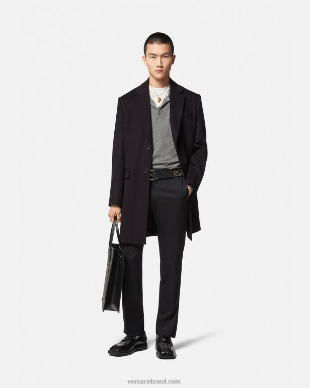 em uma construção fina e trespassada, este casaco longo é feito de lã com lapela entalhada e forro com estampa la greca.