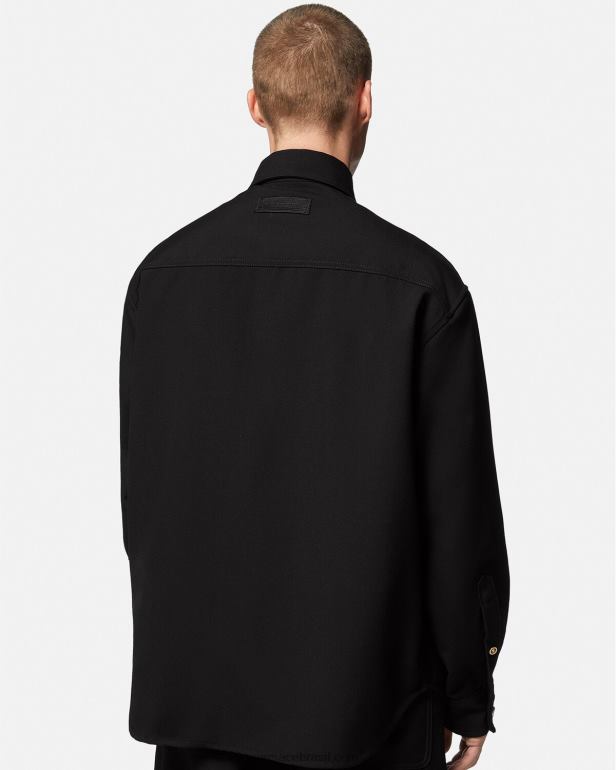 confeccionada em lã virgem com forro de algodão macio, esta camiseta apresenta botões e tachas medusa em todo o design, bolsos frontais com aba e gola com botão.