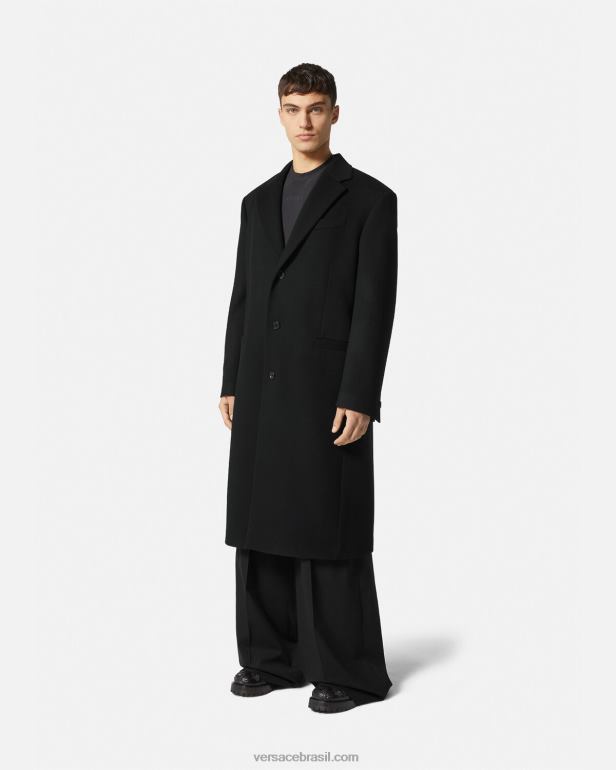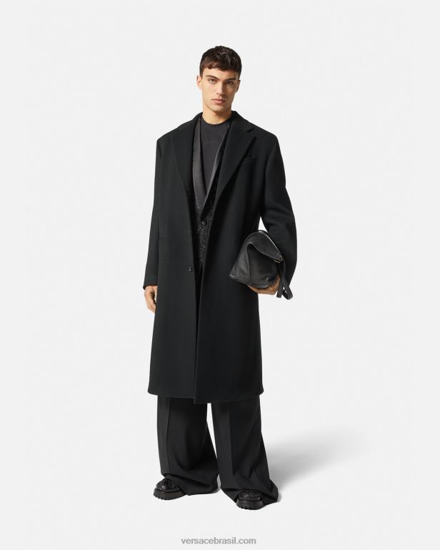 roupas P2TX1245 Versace casaco de lã trespassado preto homens