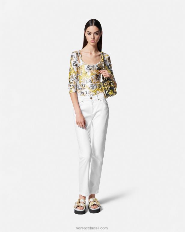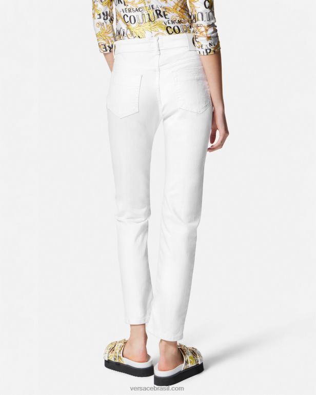 com corte justo, esses jeans são feitos de jeans de algodão com design de cinco bolsos.