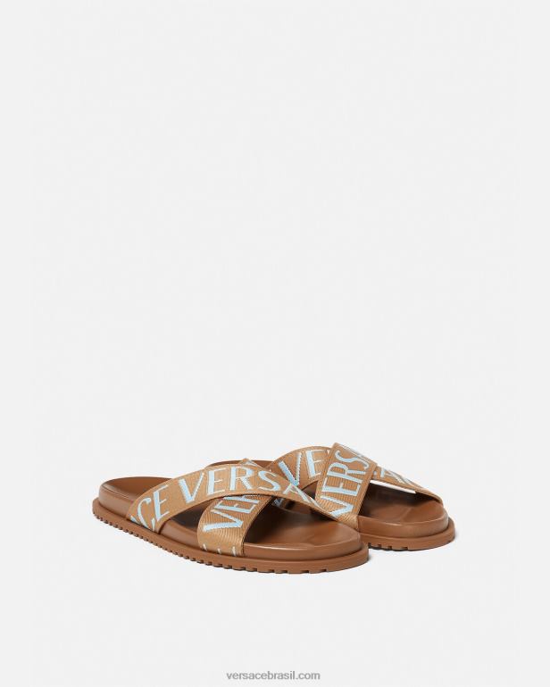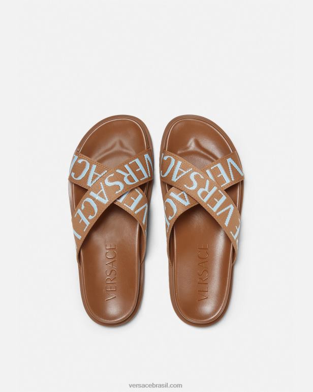 essas sandálias abertas apresentam tiras cruzadas em jacquard com um padrão versace tonal. este design é baseado em solas moldadas confortáveis.