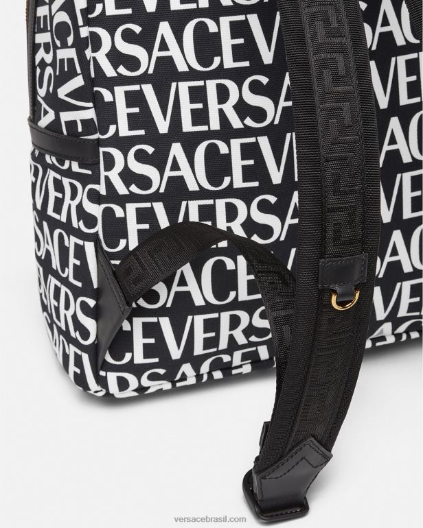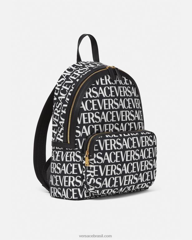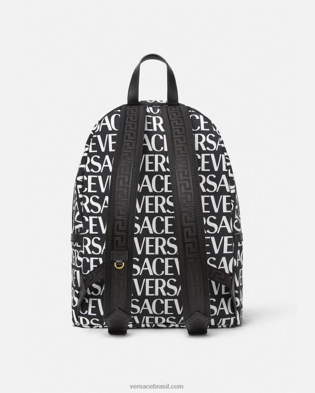 feita de lona revestida, esta mochila apresenta a impressão do logotipo Versace em toda a peça. o estilo prático possui um grande bolso frontal para fácil acesso, enquanto o interior espaçoso possui um bolso com zíper e deslizamento. um padrão jacquard greca aparece nas alças.