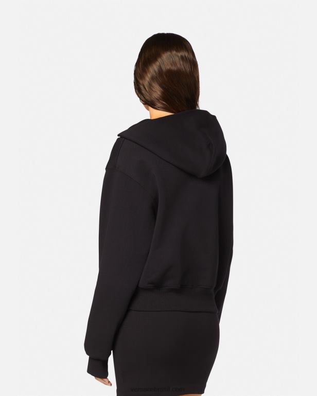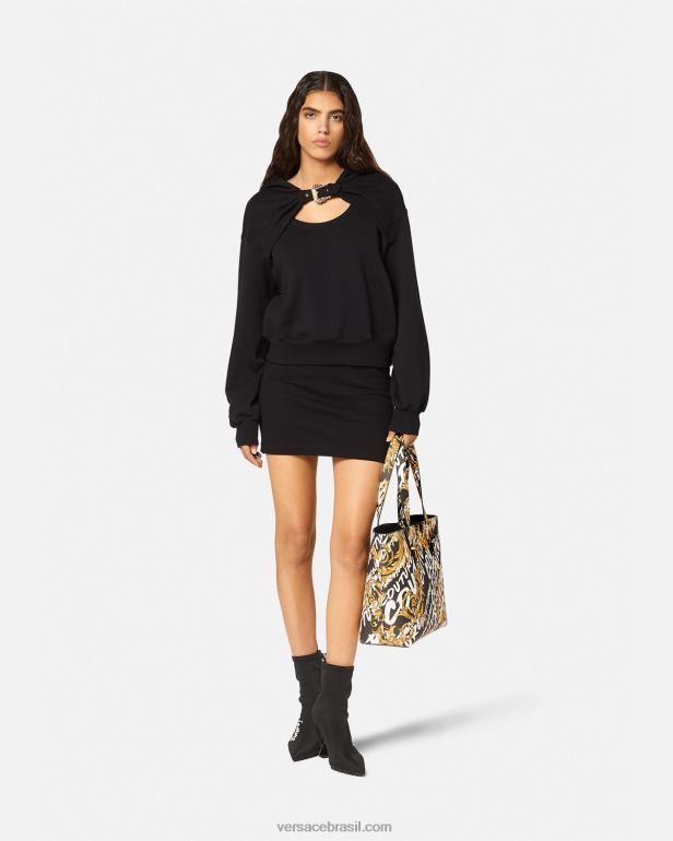 este moletom com capuz em jersey é feito de algodão e apresenta uma fivela barroca de alta costura1 na frente com um detalhe recortado.