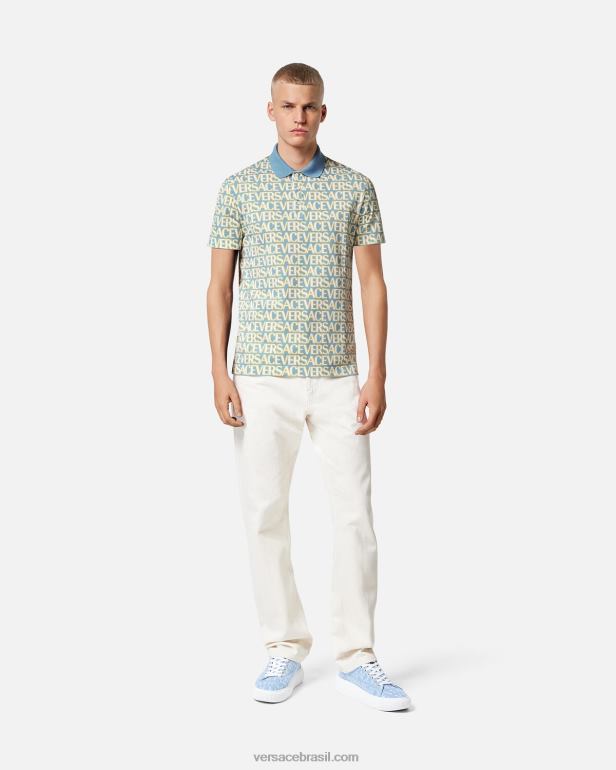 esta camisa pólo de manga curta é feita de piquê de algodão e apresenta um design em painéis com um logotipo Versace na frente e estampa de bolinhas barrocas nas costas.