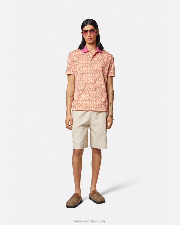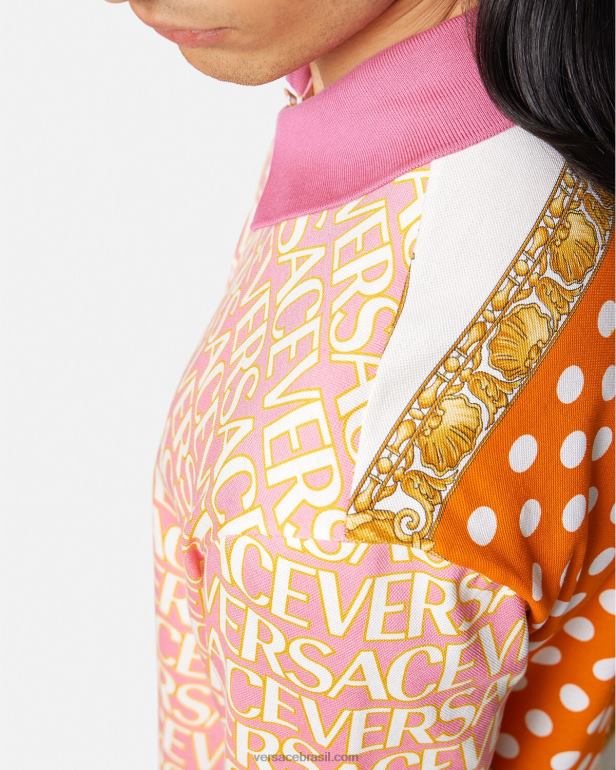 esta camisa pólo de manga curta é feita de piquê de algodão e apresenta um design em painéis com um logotipo Versace na frente e estampa de bolinhas barrocas nas costas.