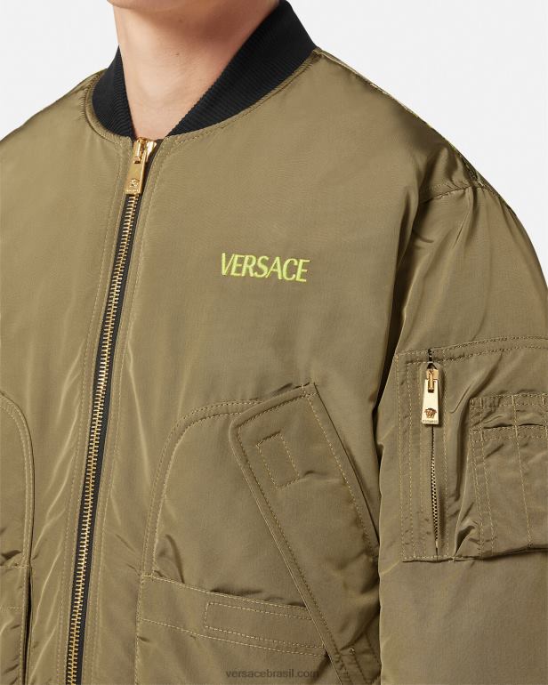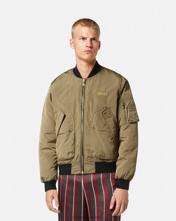 uma jaqueta bomber acolchoada confeccionada em nylon técnico com forro acolchoado e estampa le maschere no painel traseiro. um logotipo bordado no peito, acabamentos canelados e bolsos rematados finalizam este versátil estilo de vestuário exterior.