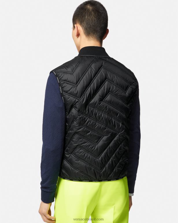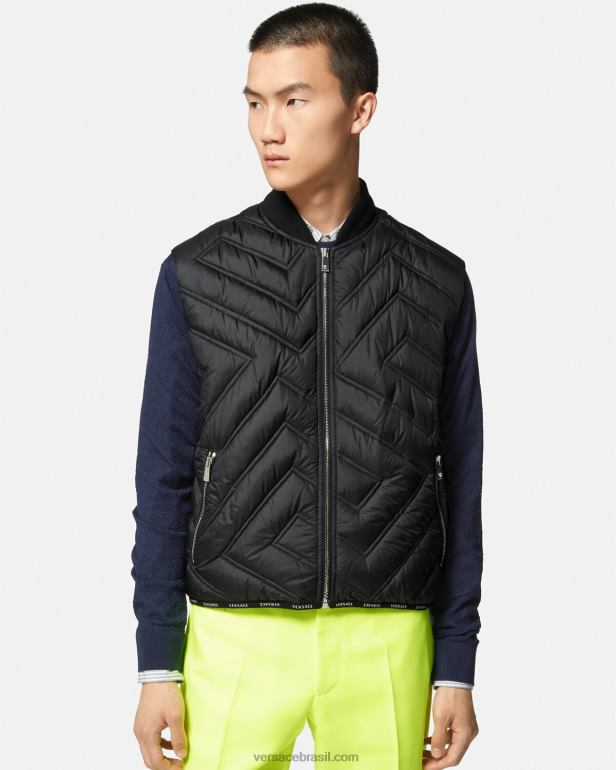 roupas P2TX1247 Versace colete puffer la greca preto homens