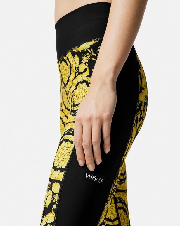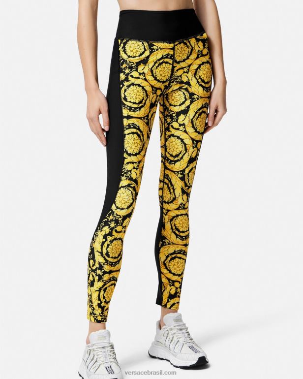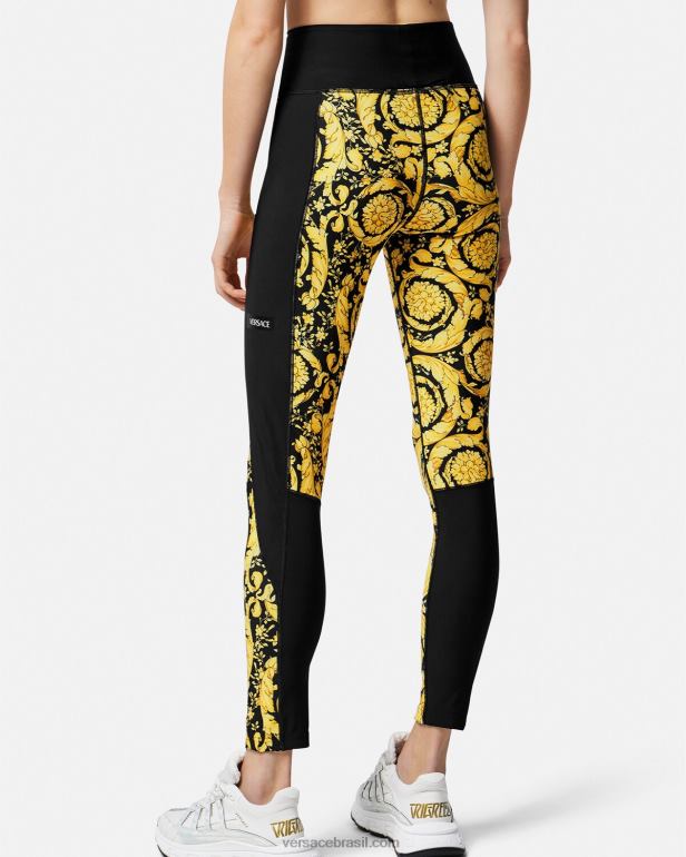em um toque muito versace para roupas esportivas, essas leggings de ginástica são embelezadas com estampa barroca e um logotipo Versace na perna.