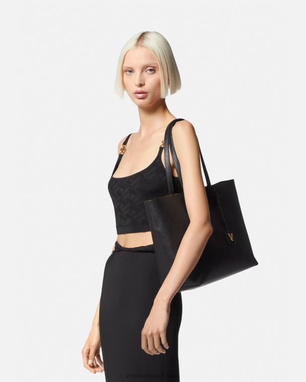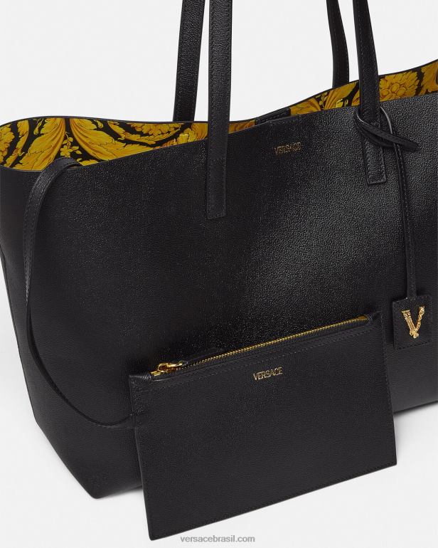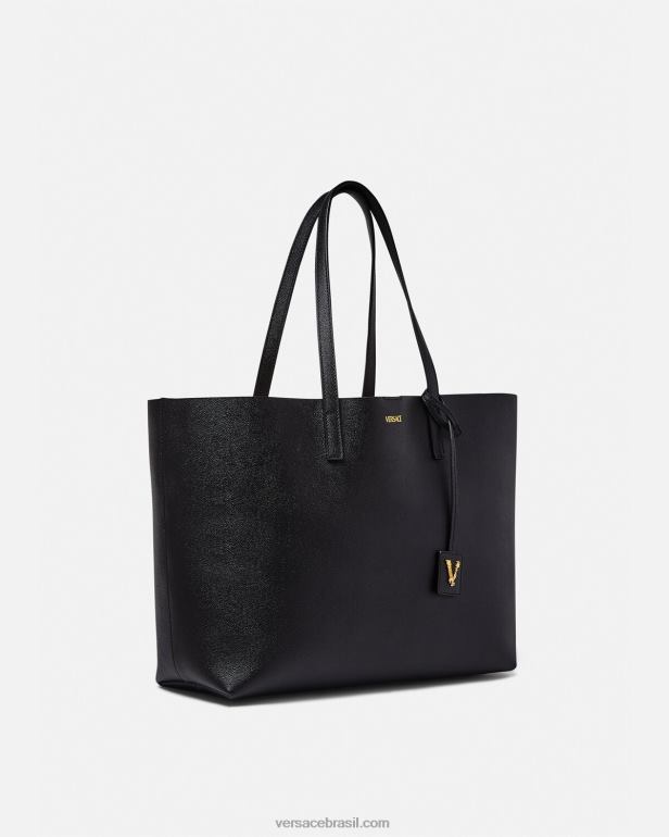 Tomando o nome da divindade romana da virtude e do valor, esta sacola é embelezada com emblemáticas ferragens barroco v. confeccionado em couro flexível, apresenta um logotipo sutil em relevo e um pingente de chaveiro de couro.