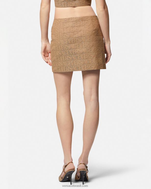 esta minissaia apresenta um padrão jacquard em lona versace detalhado com acabamentos em couro. um fecho frontal e bolsos laterais com zíper acentuam o estilo.