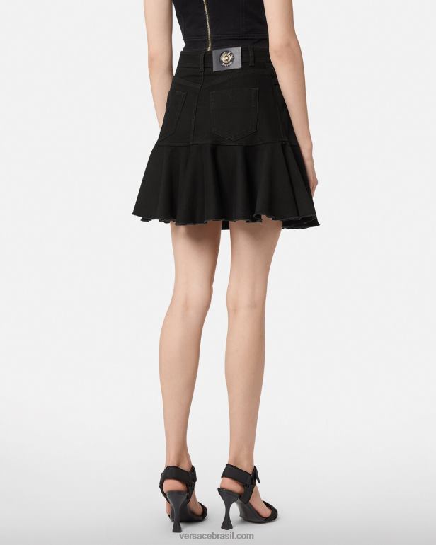 roupas P2TX2253 Versace saia jeans barroca couture1 preto mulheres