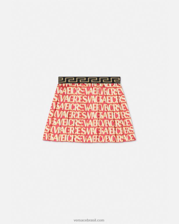 esta minissaia plissada apresenta a impressão do logotipo Versace Allover Kids com um cós elástico com borda jacquard Greca para maior conforto.