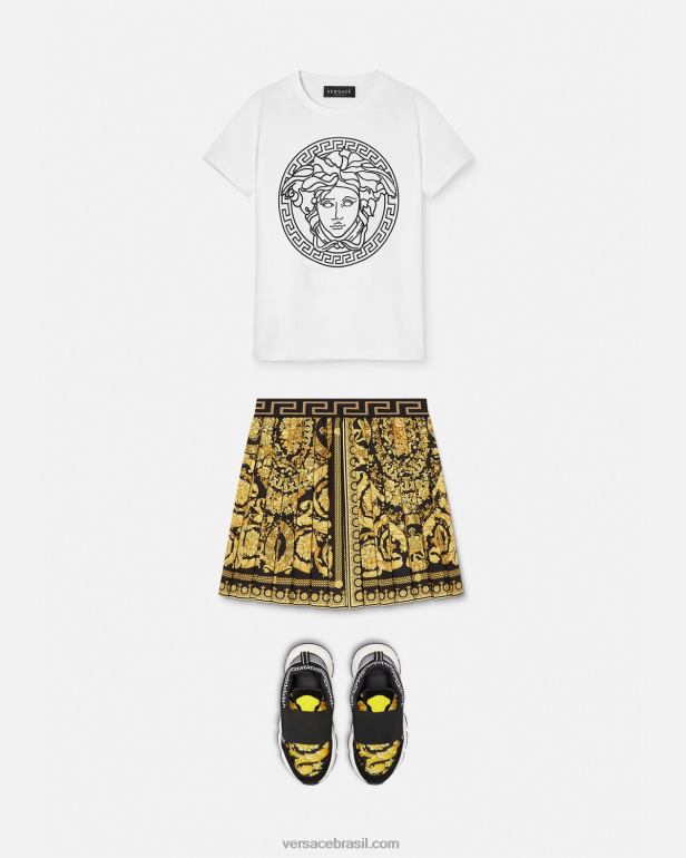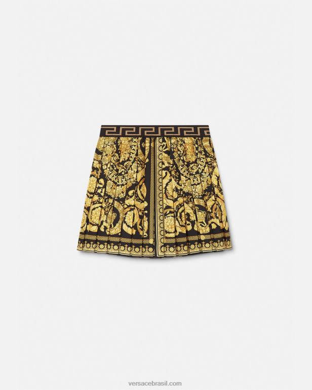 um design icônico da Versace traduzido para os mais pequenos, esta minissaia plissada tem estampa barroco. a saia possui cós elástico jacquard greca para maior conforto.