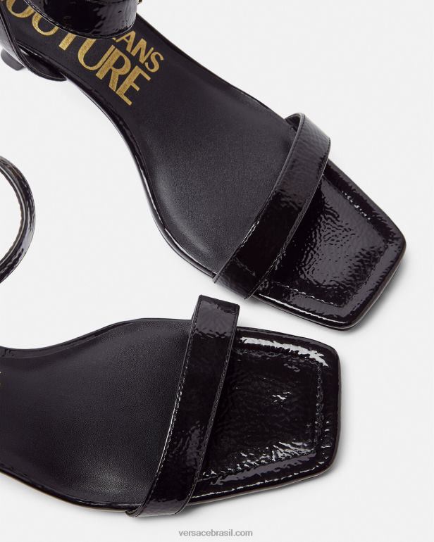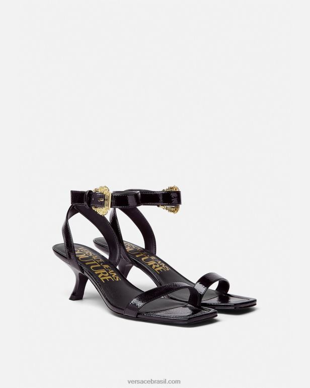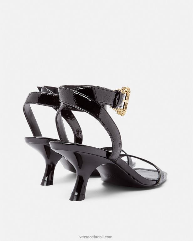 Sandálias de salto gatinho com tira no tornozelo e fivela barroca.