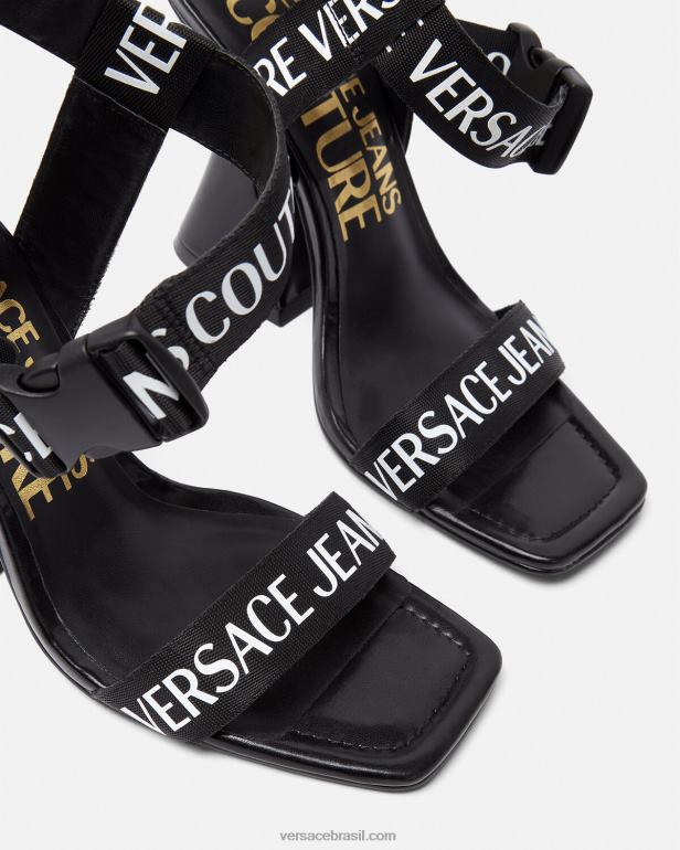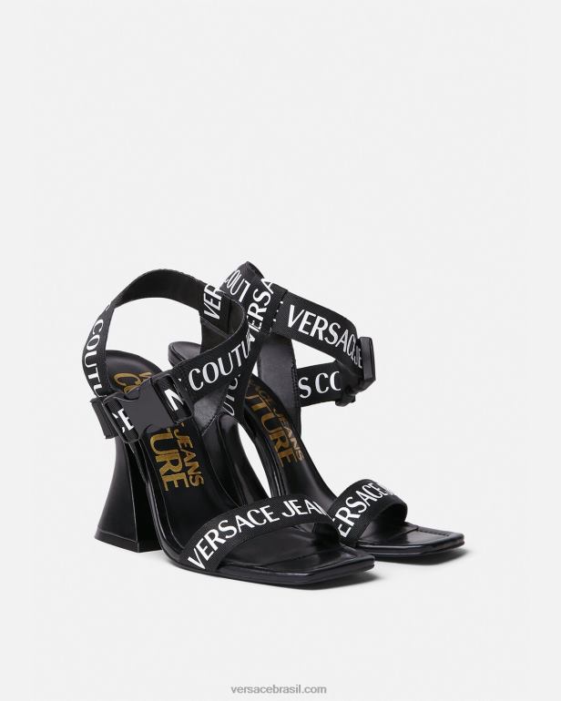 essas sandálias de salto alto apresentam salto bloco e tiras de tecido com fecho de fivela e estampa de logotipo.