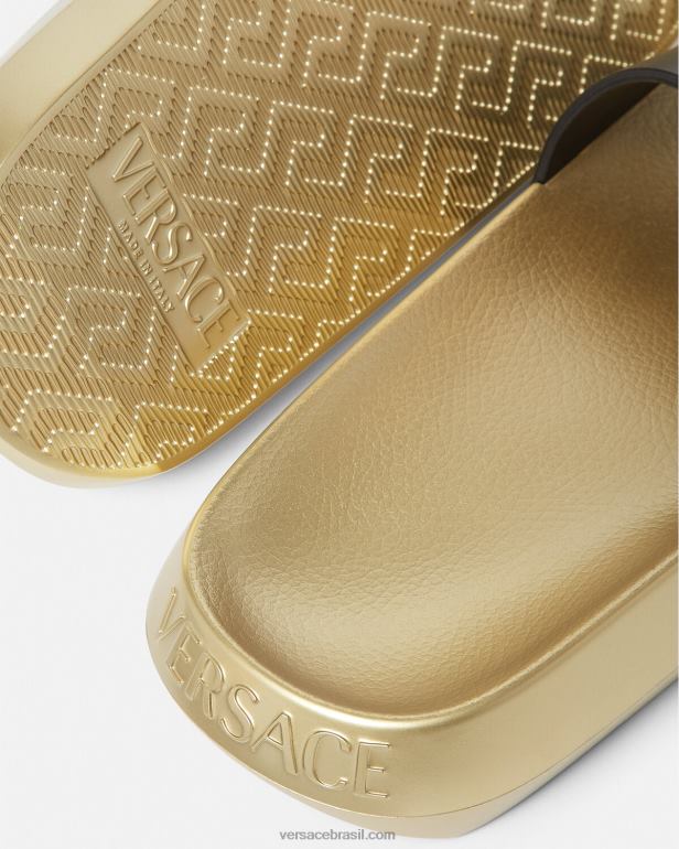 esses slides são adornados com uma placa tridimensional la medusa e o logotipo versace no calcanhar.