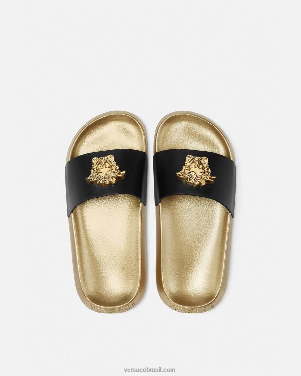 sapato P2TX452 Versace slides da medusa preto mulheres
