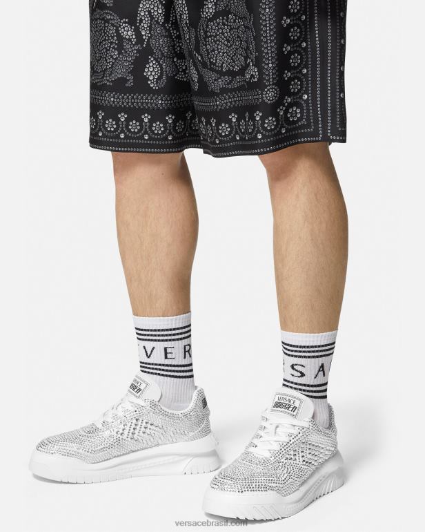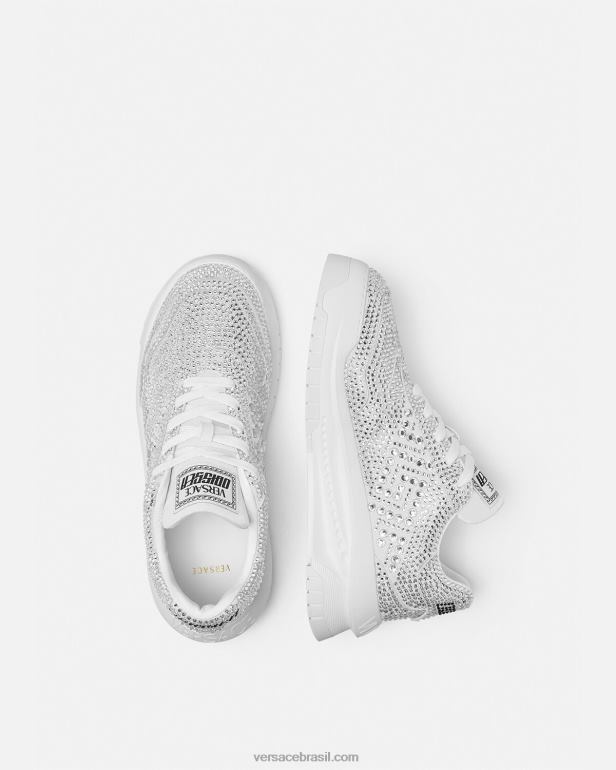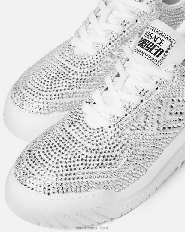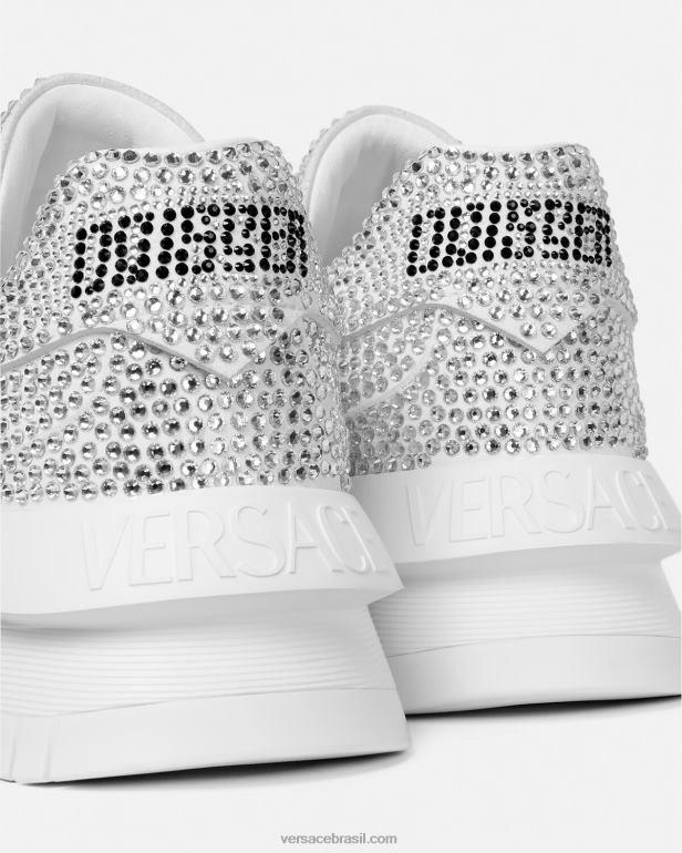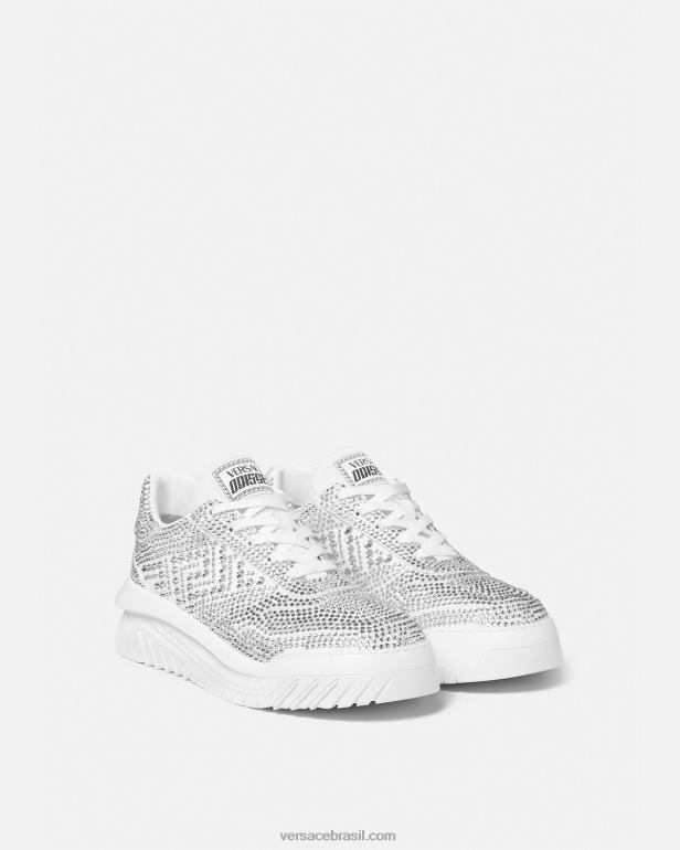 uma adição enfeitada com cristais à linha odissea, esses tênis leves com cordões têm solas de borracha dinâmicas para um pouso marcante. eles são detalhados com um logotipo em relevo no calcanhar.