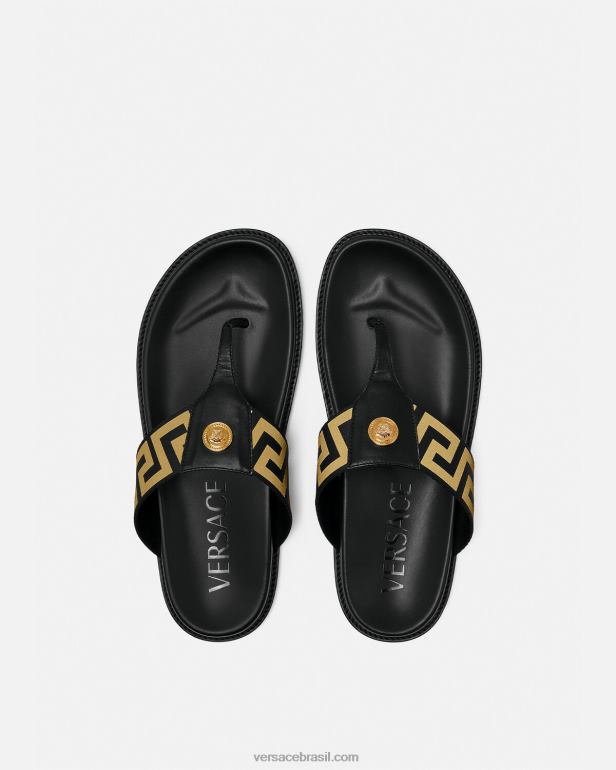 Home| homens| sapato| sapato P2TX1591 Versace sandalia medusa greca ouro Preto homens