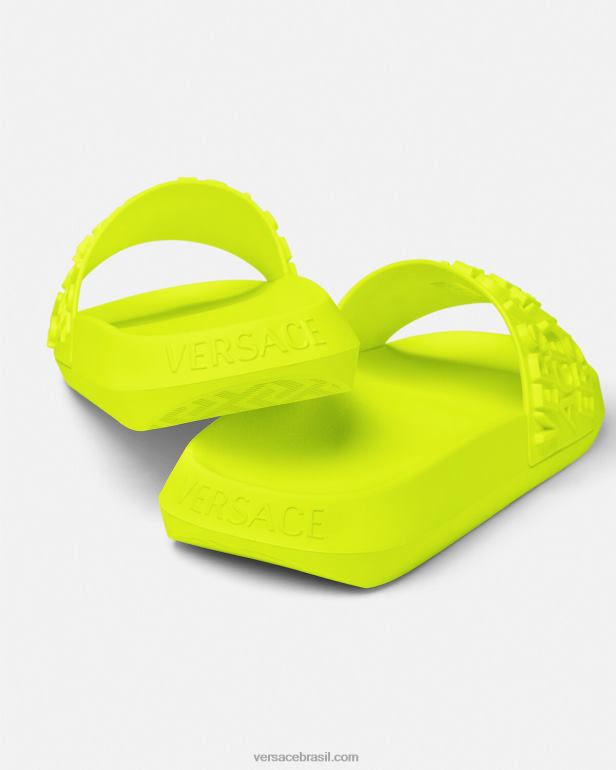 esses controles deslizantes de borracha apresentam um padrão versace na parte superior em um efeito tridimensional.