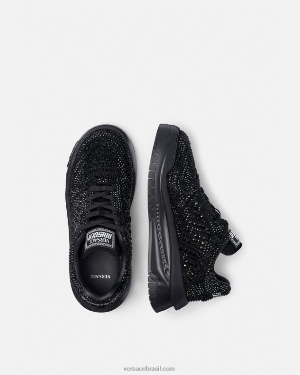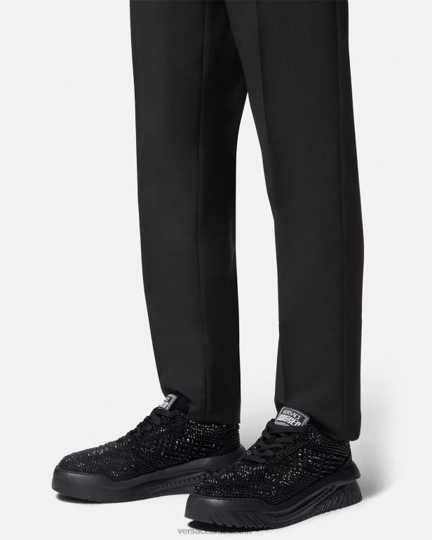 uma adição enfeitada com cristais à linha odissea, esses tênis leves com cordões têm solas de borracha dinâmicas para um pouso marcante. eles são detalhados com um logotipo em relevo no calcanhar.